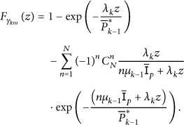 Based on the relay selection strategy in (1), the CDF at for the kth hop can be derived as (8). Moreover, by taking the first derivative of , we obtain the PDF in (9).