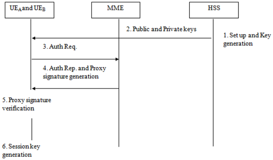 Figure 1 shows the system model. It consists of two UEs connected to a MME, which in turn is connected to a HSS. In this model, HSS generates the system parameters and exchanged with MME. The UEs send their authentication request and get authentication reply from MME, which are illustrated in the next section.