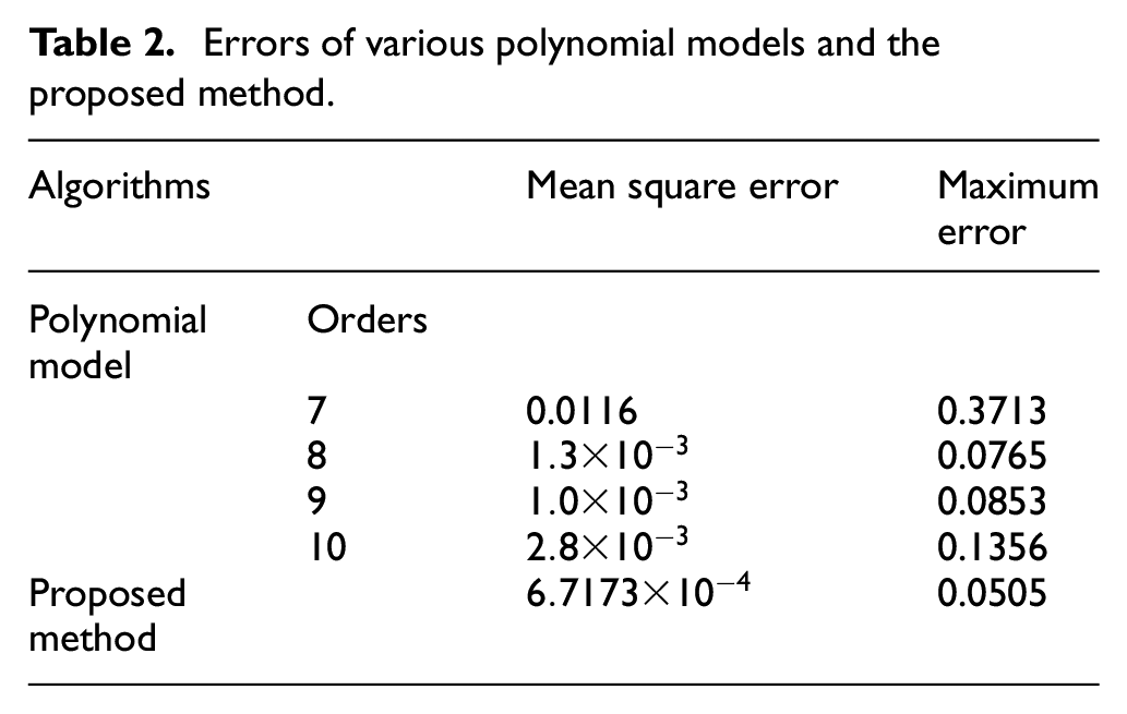 Errors of various polynomial models and the proposed method.