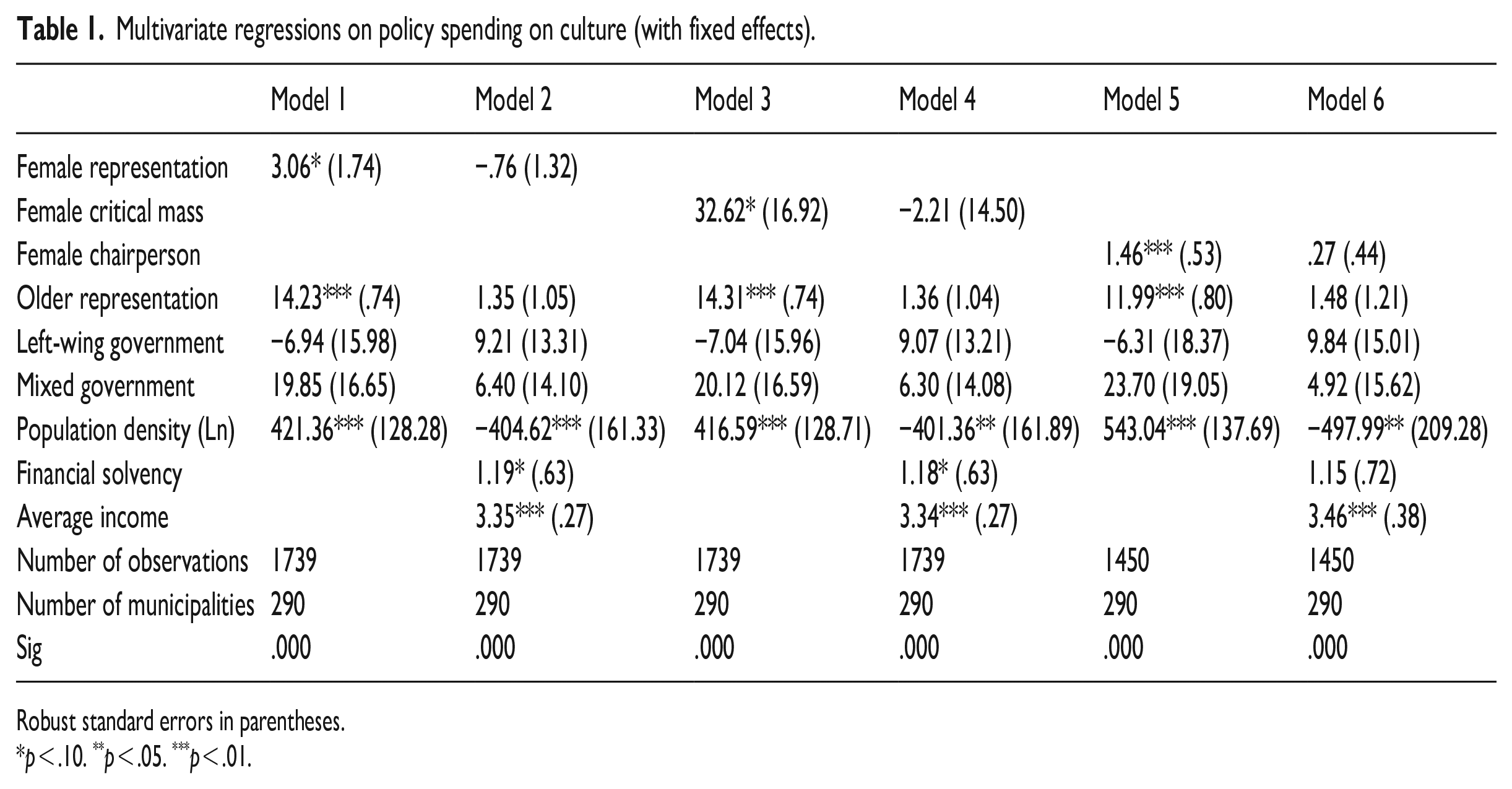 Multivariate regressions on policy spending on culture (with fixed effects).