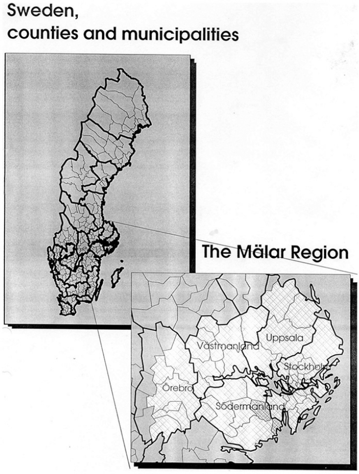 We base our study on all individuals who were registered with legal residence in one of the municipalities of the Mälar region on 31 December 2005 and were gainfully employed with a given workplace location also in Mälardalen in November the same year. According to the register on employment at Statistics Sweden, a person is gainfully employed if he or she worked at least one hour per week during November in a given year. Those with several workplaces were excluded from the data. For some people, for example farmers, the workplace may be located at the same address as that of their residence. In the registers, all individuals are registered with the location of their residence being specified at a detailed geographical level. Workplaces are specified with similar degree of geographical precision. In our case, the data on employment and residence are provided to us with the accuracy of Small Area Market Statistics (SAMS) areas: the region has about 2600 such areas in total. This level of geographical precision is used as the basis for our data on travel distances for the commuters in the region. Our definition of being a commuter, however, is based on municipality borders: An individual is defined as being a commuter if his or her place of residence is located in one municipality but the workplace is located in another municipality. The reason for choosing this definition is that the municipality often is perceived by both residents and commuters as the most critical geographical demarcation; further, a motivation for our study is to provide input for actions taken by municipalities in terms of planning. With our definitions, there were 1,225,697 employed residents within the Mälar region at the end of 2005; 502,546 of them were commuters.