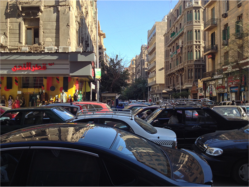 The ambiguity of familiar materialities such as sound devices (phones and computers) may fundamentally alter human relations and actions. Suspicion thrives when the familiar sphere is infused with ambiguity; when things and experiences that induce normalcy or monotony simultaneously project fear and vulnerability. Suspicion is employed by my interlocutors as an agential navigational act, where sound (or the lack thereof) is a vibrational infrastructure that must be navigated. Already in 2014, the suspicious government developed a mass surveillance system of private conversations (and social media) while cooperating with an affiliate of an American firm named Blue Coat that focuses on cyber surveillance and spying (Ezzat, 2014). Although the company distanced itself publicly from the Egyptian state in 2014 (Frenkel, 2014), it was still part of the government’s surveillance partners in 2017, by then having been bought by the company Symantec (Morgan, 2017). The sonic control of phones is a prevalent tool of Egyptian state surveillance. Phones are monitored, particularly if you are a political opposition activist, thinker, writer, academic or journalist, or if you are perceived as an enemy of the state, which means that these targeted groups never use phones for politically sensitive talks. To give one example of agential acts, men told me that they delete information – with help from outside – once detained. One man, a famous member of the human rights community in Egypt who I have known for a couple of years, told me that the second he was detained, his phone transformed into just a piece of plastic. People from outside prison assisted him and deleted all files, documents, calls and message history on his phone, as well as his social media accounts, including Facebook. Hence, in this example we can explicitly follow the transformation of the sonic into silent objects. Another short account is that of Amr. He approached me at a downtown bar and asked if we could meet in the near future to catch up. This was 2017 and Amr was then just out of prison, where he had spent three and a half months. When he gave me his new number I immediately noticed his very simple Chinese phone; a phone that is a sign of sonic protection. This plain version is much safer than a smartphone, as it is much more difficult to monitor than a more sophisticated device due to its lack of GPS, etc. After Amr left the bar, several of my friends who also know him warned me not to meet him during my planned time in Egypt. They informed me that Amr was not only monitored in a ‘normal’ sense, as they were, but much worse. He was additionally displaced. It would be much too dangerous for Amr – as he should know, they underscored – but also for me. The last example of state surveillance and resilience is the following: I overheard a phone call during which my friend Ahmed suddenly shouted out to his male friend: ‘Stop talking about this! Stop talking about this on the phone’. He later explained to me that the friend, who works for the government, had lost his temper and burst out in anger about all the corruption that was going on. By shouting this warning, Ahmed told me that he was informing his friend that he was being monitored, to protect him, but that he also wanted to show the security apparatus that he was well aware that they were monitoring him. Simultaneously, I was surprised that the same people talked about sensitive matters much more than would be safe to on the phone or even in public places, where they easily could be caught if anyone overheard them. I later understood that these men exposed themselves to danger and broke their own rules to stay sane, to be masculine and to stay close to their own dignity and what they believe in. We can by the above scenario and the following ethnographic case follow the blurred lines between struggles of displacement and acts of space making. Ali told me about something uttered by one of his friends, an old revolutionist, when he found out that Ali was in contact with the (by then) opposition leader and lawyer Khaled Ali. The friend said: ‘Do not hang out with him anymore! Are you crazy? You must stop texting him and calling him and please do not meet him in public. It is way too dangerous now’. But Ali did not care; he said that he was only more careful and alert if they met in public places. Other men taught me that they employ sounds of confusion, such as code names for places to meet (e.g. ‘we’ll meet later at work’, meaning later at a specific local bar), which leads us into the third section – on cityscapes.