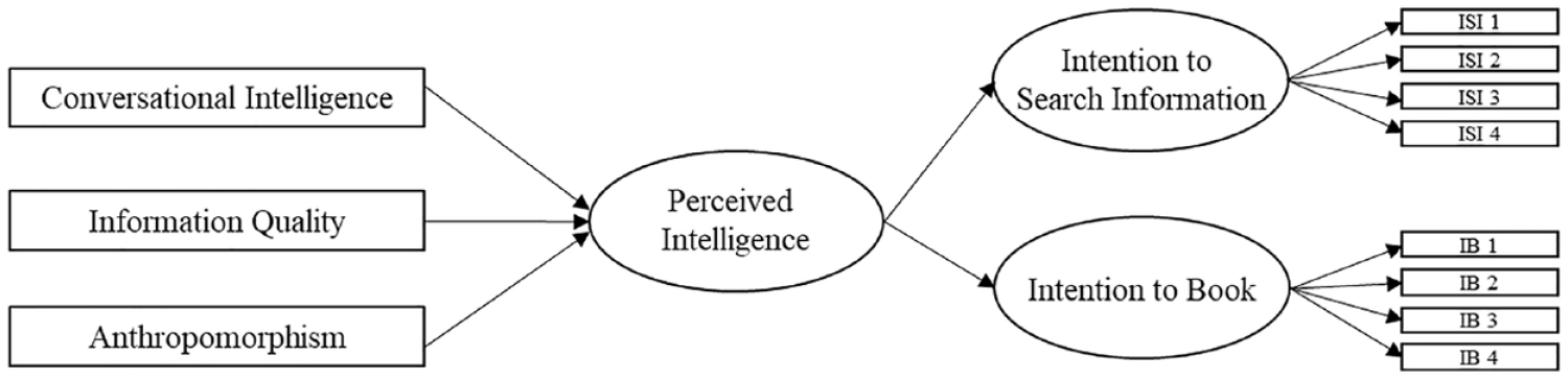 Furthermore, considering the aforementioned three dimensions of perceived intelligence, it can be proposed that conversational intelligence, information quality, and anthropomorphism directly influence travelers’ intention to search for travel information and book travel services using AI assistants.