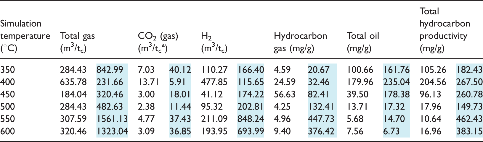 The results of experiments considering only the heat from magmatism yielded a peak total hydrocarbon productivity of 204.56 mg/g at 400°C (Table 3). These heat-only experiments yielded hydrocarbon generation patterns that are similar to those generated by traditional source rock pyrolysis where the peak of hydrocarbon generation is coincident with the stages of maturation of organic matter before decreasingly consistently with increasing temperature (Figure 4).
