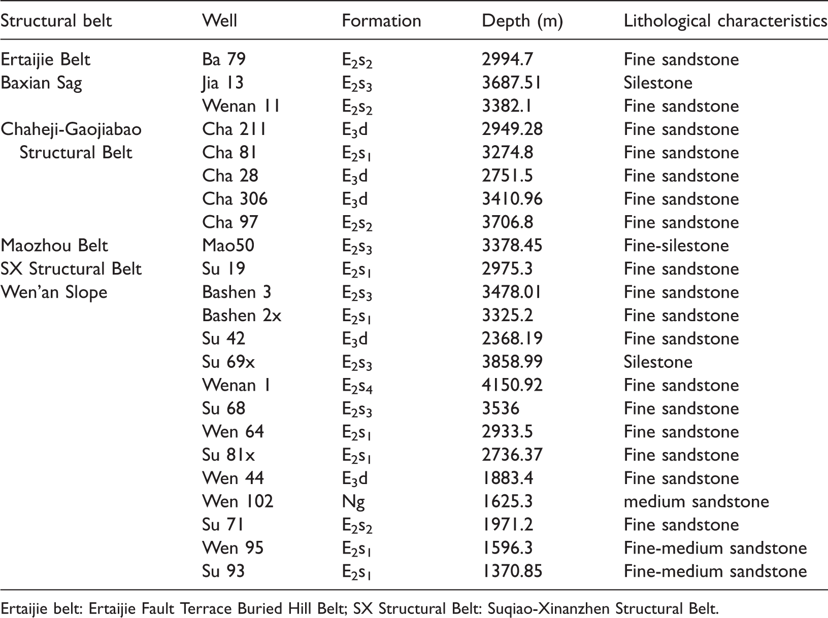 Above the Cenozoic basement, the Baxian Depression can be subdivided into two tectono-stratigraphic levels: a rifting stage (60.5–25 Ma) during the Paleogene and a thermal subsidence stage (25 Ma to the present) during the Neogene and Quaternary (Zhang et al., 2008). In ascending order, the synrift sediments are represented by the Kongdian (E1k), Shahejie (E2s), and Dongying (E3d) formations (Figure 1(d)). These formations were deposited in fluvial-lacustrine environments. Three hydrogen-rich, oil-prone source rocks have developed in the fourth, third, and the first member of the Shahejie Formation (E2s4, E2s3, and E2s1, respectively), and all of them have been confirmed to be effective source rocks in the Baxian Depression (Huang and Pearson, 1999). The postrift sediments consist of the Guantao (Ng), Minghuazhen (Nm), and Pingyuan (Qp) formations (Figure 1(d)). The Ng Formation is dominated by braided river sandstones whose thickness can reach up to 700 m. The Nm Formation is deposited in a fluvial environment and is dominated by thin interbedded sandstones and mudstones.