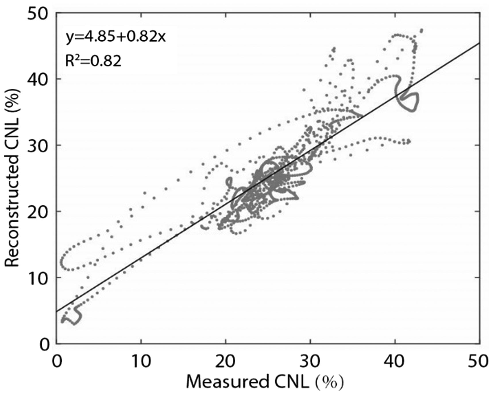 The cross plot of measured and reconstructed CNLs. CNL: compensated neutron log.