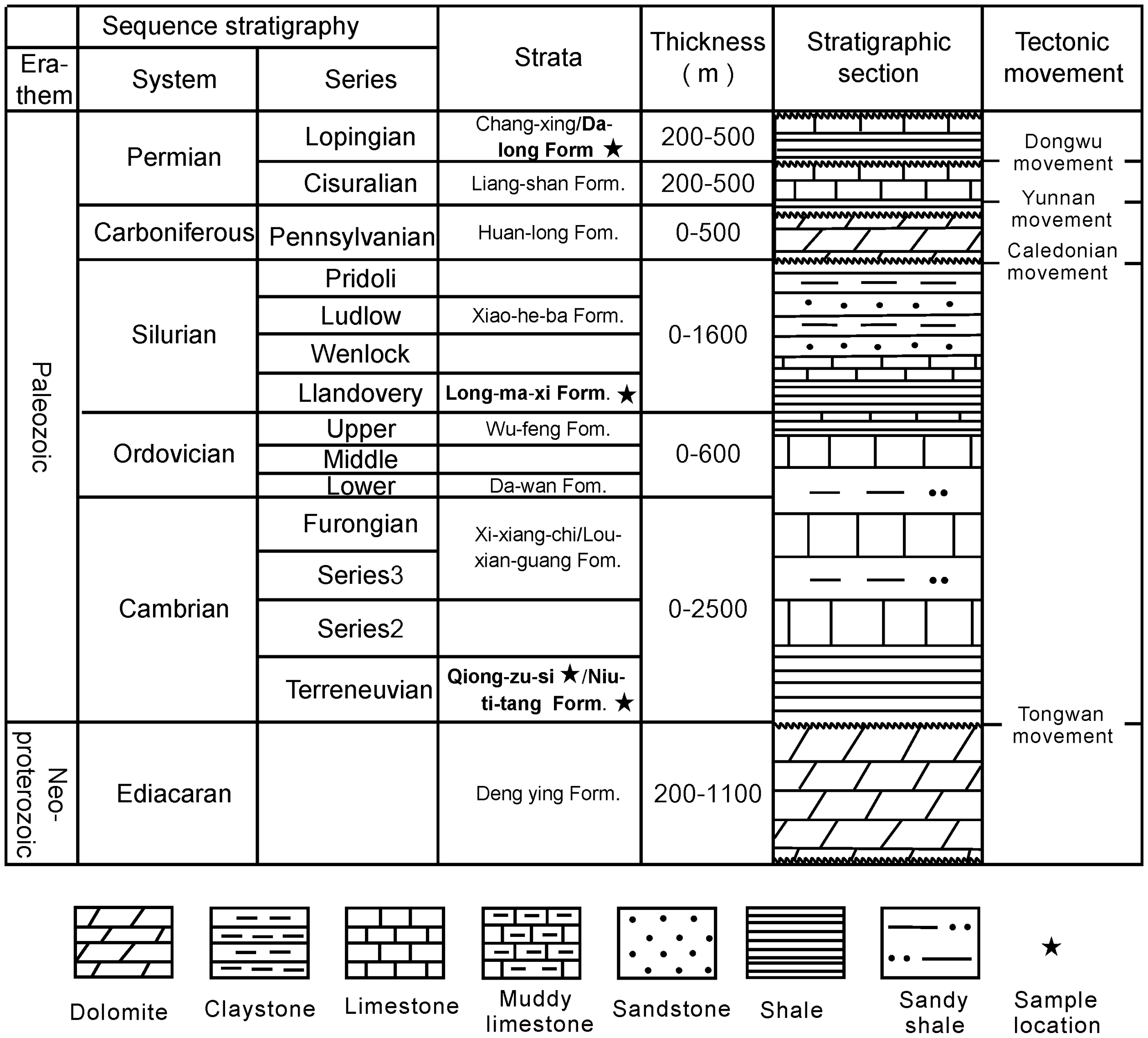 Palaeozoic stratigraphic system of the study area, modified after Wang et al., 2013.