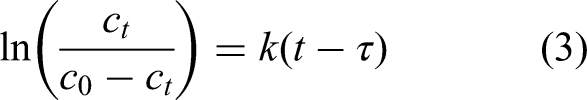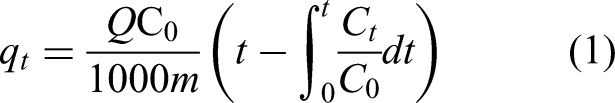 where C0 and Ct are the inlet and outlet concentrations at time t, respectively, k is the rateconstant (min−1), and r is the time required for 50% breakthrough (min).