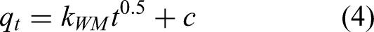where kWM is intraparticle diffusion rate constant, mg/(g·min0.5);