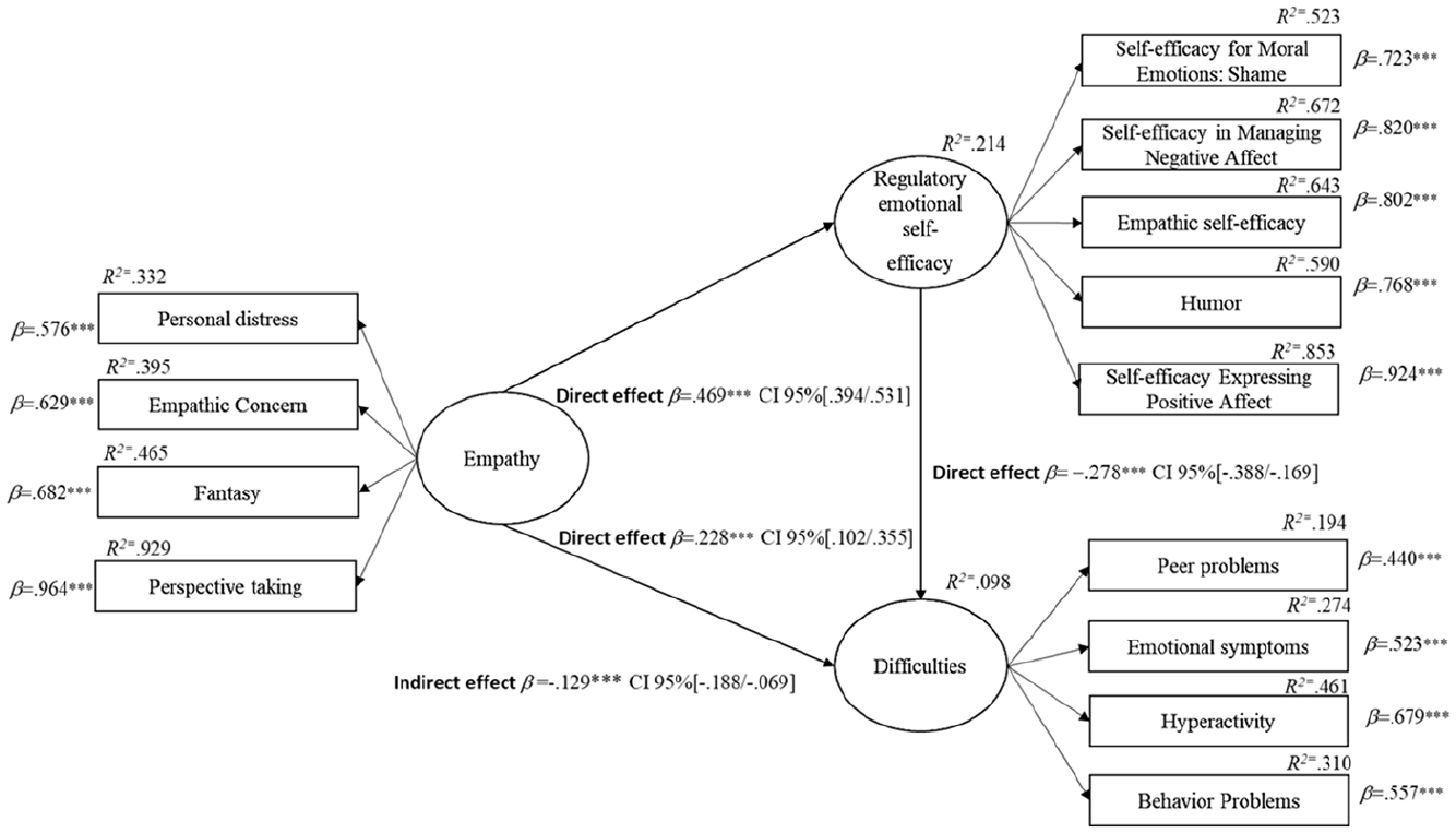 Structural equation modeling of the effect of empathy on difficulties and the mediating role of regulatory emotional self-efficacy.
