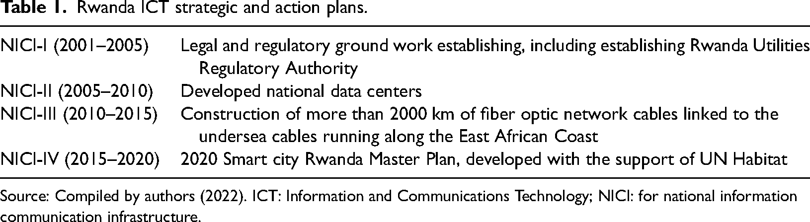 Source: Compiled by authors (2022). ICT: Information and Communications Technology; NICI: for national information communication infrastructure.