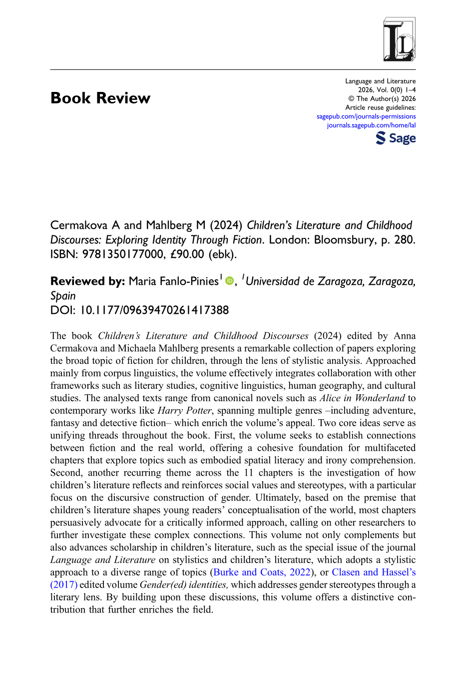 (2022 ) Stylistics and children’s literature . Language and Literature 31 (1 ): 3 –10 .