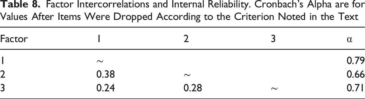 Factor Intercorrelations and Internal Reliability. Cronbach’s Alpha are for Values After Items Were Dropped According to the Criterion Noted in the Text
