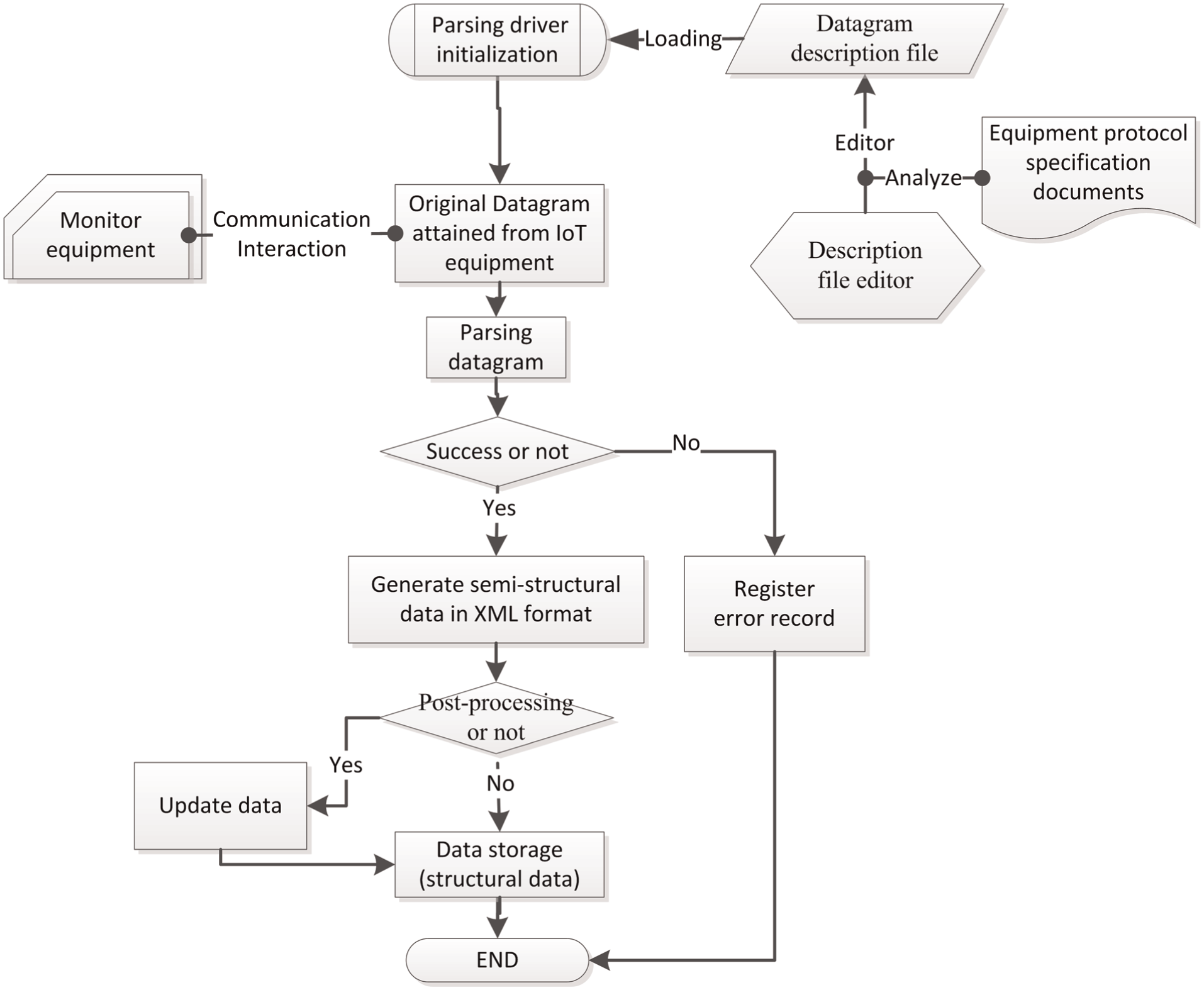 We proposed a unified data parsing framework to address the issues associated with data source heterogeneity. A DSDM based on XML was defined. The semantic description of datagrams can profoundly enhance application development efficiency, particularly when incorporating new heterogeneous sensor devices with the monitoring platform.