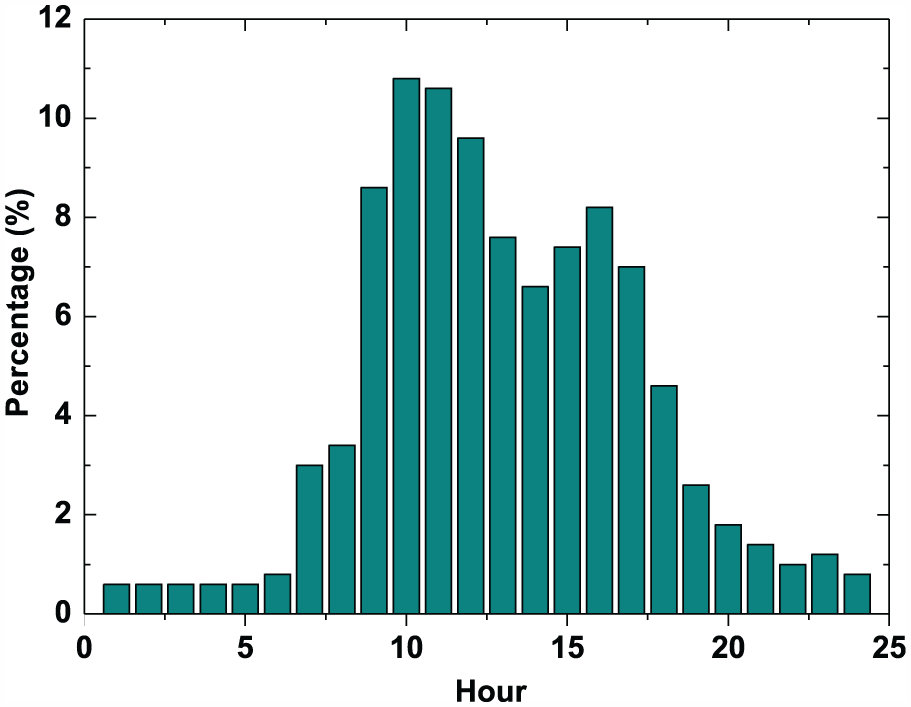 In addition to the geographical distribution of IoT traffic, the temporal variation of IoT traffic intensity in each geographical zone is also considered for baseline modeling. In Shafiq et al.