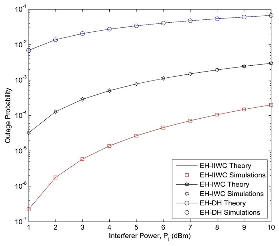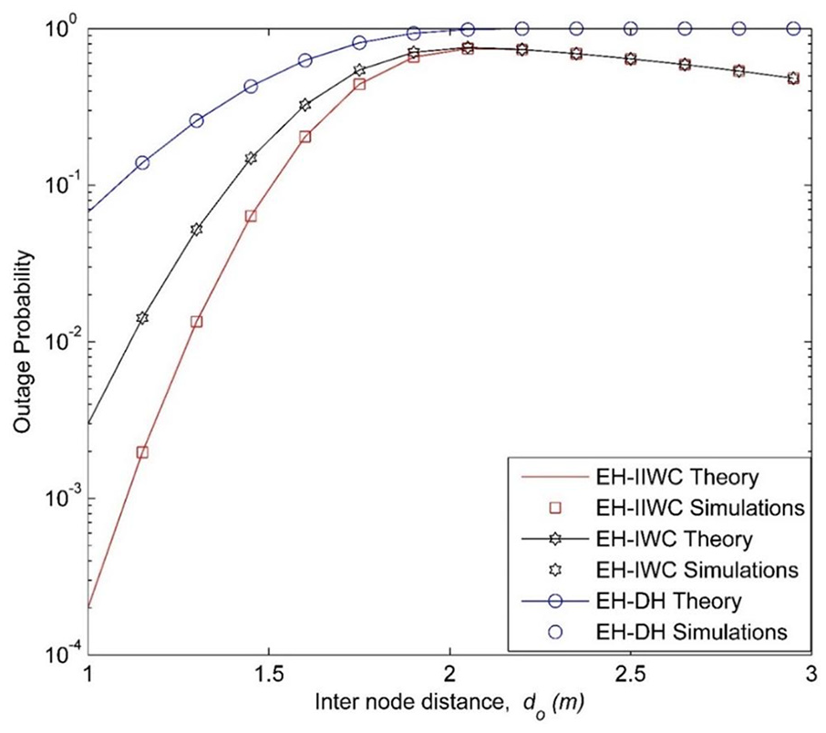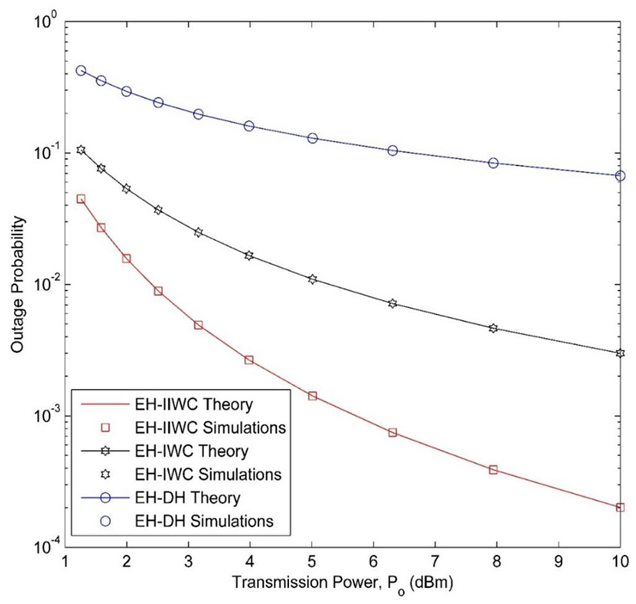In this sub-section, the outage probability of the EH-IIWC is investigated and analysed which consequently leads to the outage probability of the EH-DH and EH-IWC. As shown in Figure 2 and described previously, the outage probability of the EH-IIWC is mathematically expressed as