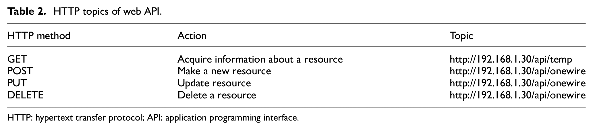 This article scrutinizes the MQTT’s publish/subscribe services on low-cost smart robots, optimization of Representational State Transfer Application Programming Interface (REST API) and JSON data from sensors, and a simple Raspberry Pi–based cloud for green house. Furthermore, how far it is utilized to process the data from the Web Application Programming Interfaces (APIs) is analyzed. A standard data pattern should be determined while creating an application to communicate with private and warehouse systems. There are ranges of public and standardized options available and the supreme choice and the ultimate selection depends on the vital demands and functionality of their applications. The data in an Extensible Markup Language (XML) payload are encapsulated to some extent of a Simple Object Access Protocol (SOAP)-based Web services.9–11 In many application frameworks, when XML performs professionally, it has some downsides that make it less than ideal for others. As a result, the creation of interactive web applications creates petulant user experience by its innumerable access. Ultimately, using JavaScript, these asynchronous calls originate on the end user and integrate formatting information, transfer it to a web server, parsing and processing with the actual response information.12–19 JSON procures a standardized data exchange format, which is more appropriate for web applications, while many browsers are able to build, transfer, and parse XML.