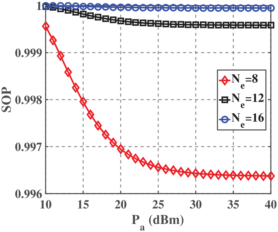 Figure 2 illustrates the effect of the number of nodes’ antennas on the SOP with