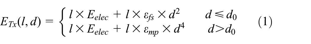 The total energy consumed of the CHs includes the transmission, reception, and aggregation. Nevertheless, it only includes the transmission in the non-CHs. The total energy consumption for the CHs is given by equations (4) and (5). Where