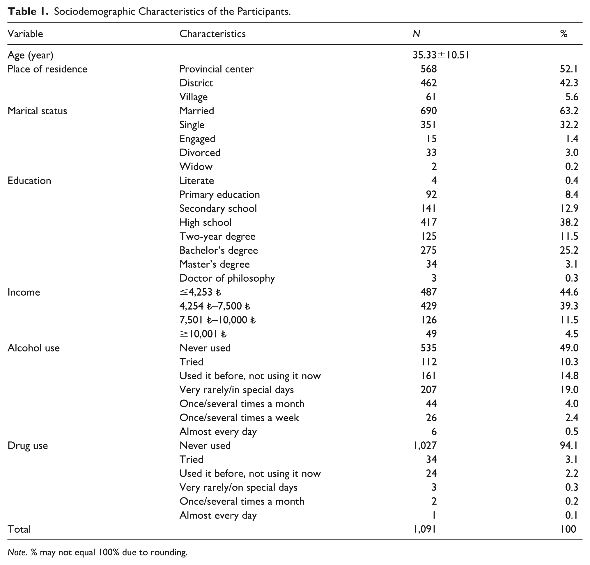 The mean age of the 1,091 men was 35.33 ± 10.51 years, 52.1% (