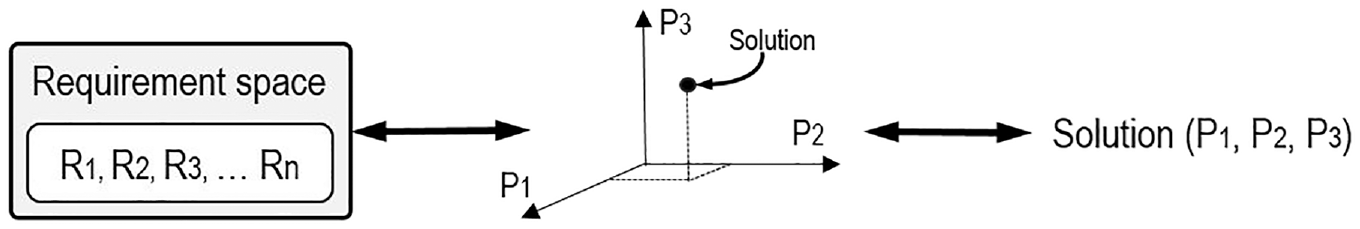 In the realm of design, the exploration of the Design Solution Space (DSS) stands as a pivotal process, involving the thorough examination and discovery of diverse design alternatives or a spectrum of potential design candidates before settling on a specific solution. The objective is not to prematurely commit to a single optimal solution, but rather to actively pursue multiple parallel alternatives, defining requirements using value ranges instead of fixed values. 1 As proposed by Kang et al., 2 this mechanism aims to uncover new ideas and validate existing ones. During evaluation, alternatives that significantly violate requirements are excluded, while the remaining options are refined and re-evaluated at subsequent decision gates.