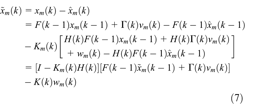 After defining the covariance of state , the state covariance estimation in equation (4) should satisfy the following recursion