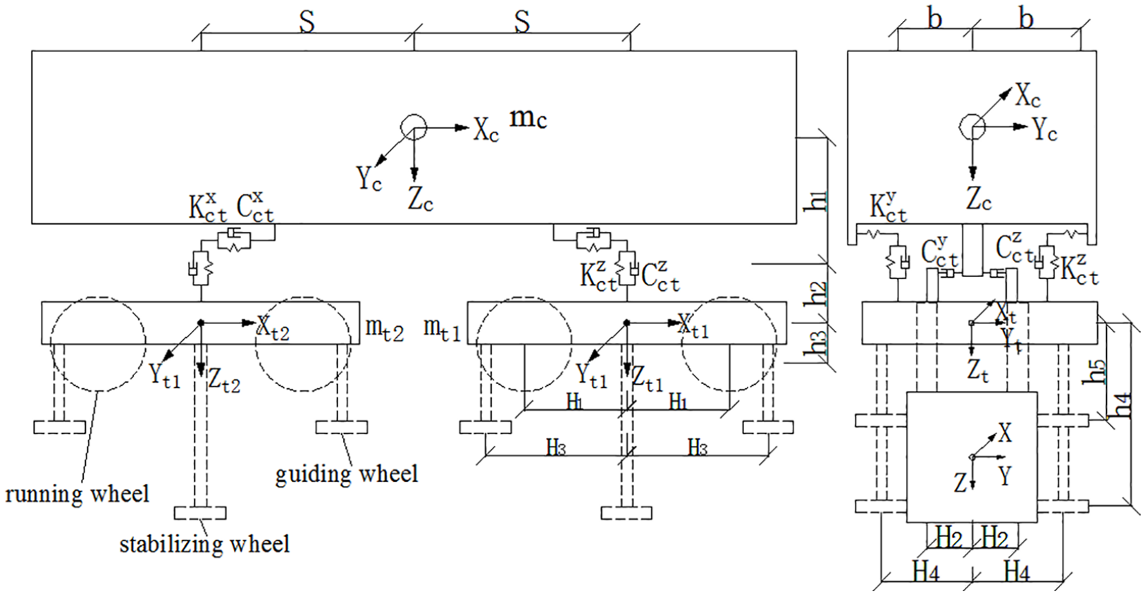 The study established a straddle-type monorail vehicle dynamic model with a multi-directional elastic tire model, which can effectively output the lateral mechanical parameters of each running wheel tire under different working conditions.