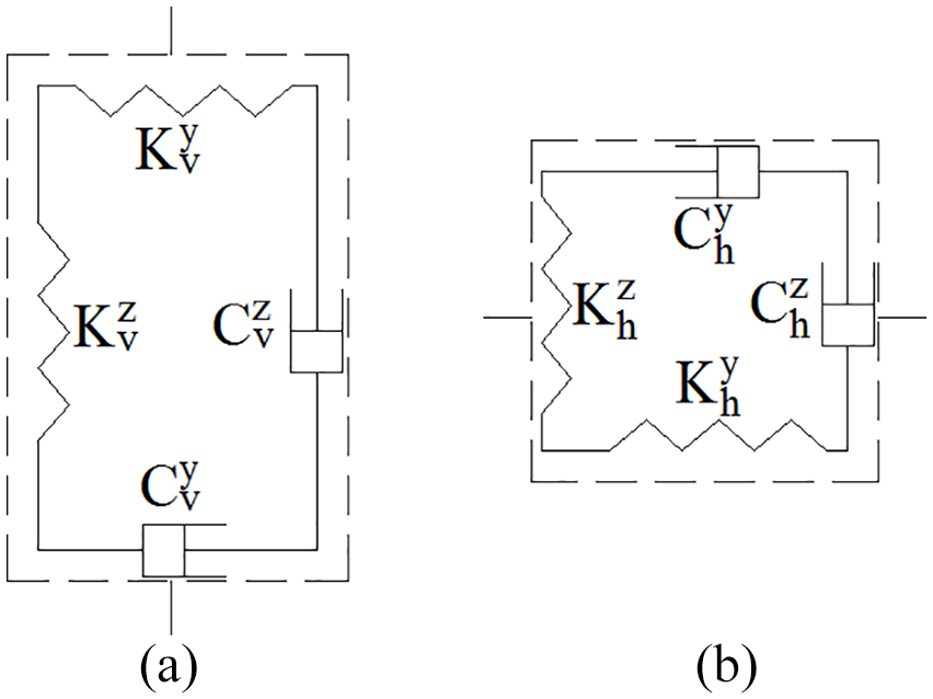 The coupling effect of the longitudinal, lateral, and vertical motion of the vehicle body and the bogies can be neglected, thus, the secondary suspension potential energy can be expressed as