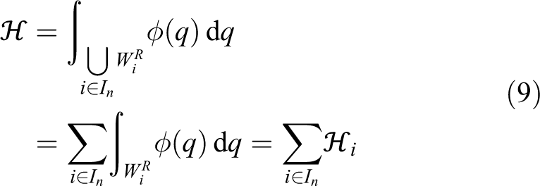 It is apparent that at since all remain unaltered by infinitesimal motions of qi, assuming no alteration of the environment. Considering the second integral, for any point it holds that , where stands for the identity matrix, since they translate along the direction of motion of qi at the same rate. As far as the sets and are concerned, they can be merged in pairs via utilization of the left and right hyperbolic branches, as introduced in AWGV-partitioning (equation (7)), as follows