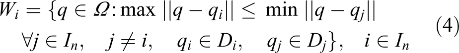 The GV diagram26 is defined for a set of uncertain regions . Each uncertain region Di contains all possible positions of a point whose localization cannot be measured precisely. The GV diagram generates cells Wi, defined as