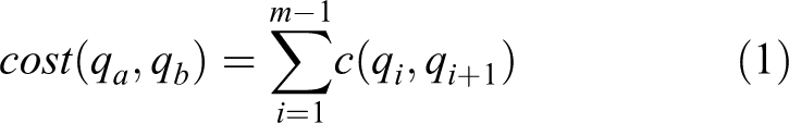 The difference between the RRT algorithm and the RRT* is in the tree expansion mode. During the expansion operation, a path cost function formed to calculate the impact of the addition of a new node is considered. The cost function represents a measure of generic magnitude (depending of the defined restrictions to each path planning problem). In this work, the cost of the path is defined by the accumulation of the Euclidean distance between the nodes of