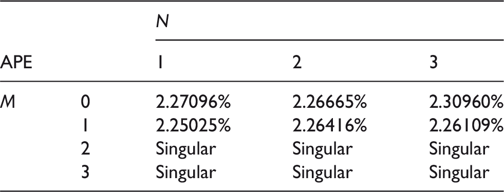 The calculated results are shown in Table 1. The table indicates that all the APEs of TSA are less than 5%. There are 249 APEs of ODE and only one APE of ODE is not less than 5% but less than 7.5%. It seems that there is almost no difference between these two approaches in this sense. But, the MAPE of TSA is less than that of ODE. It is well known that APE and MAPE are the smaller the better. As a consequence, the TSA method is preferred in the market.