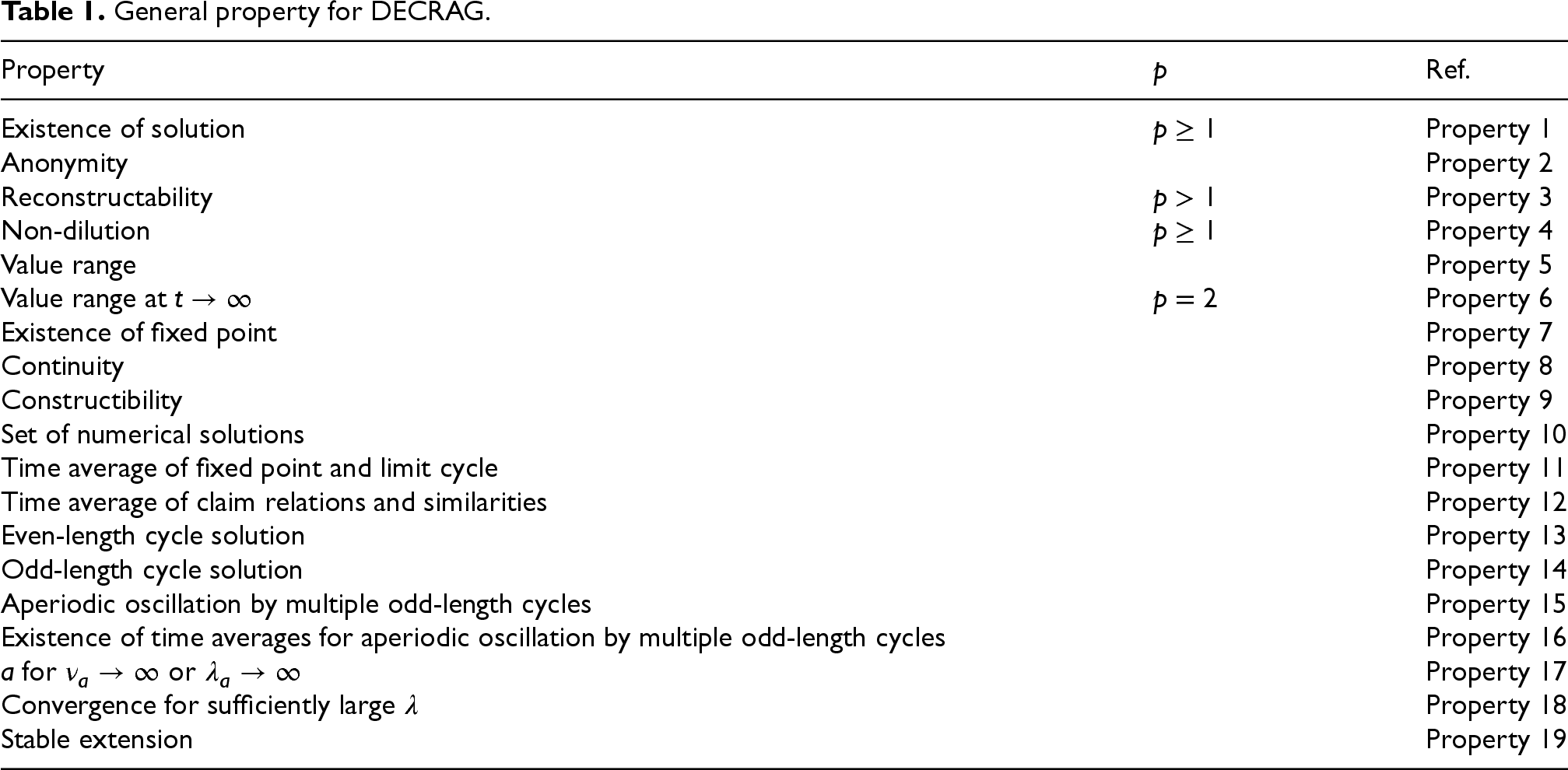 Non-dilution 20 (bivariate directionality 15 ) requires that if a proclaim is added to an argumentation graph, values of the proclaims that do not depend on it do not change. In DECRAG, non-dilution is guaranteed by Property 4.
