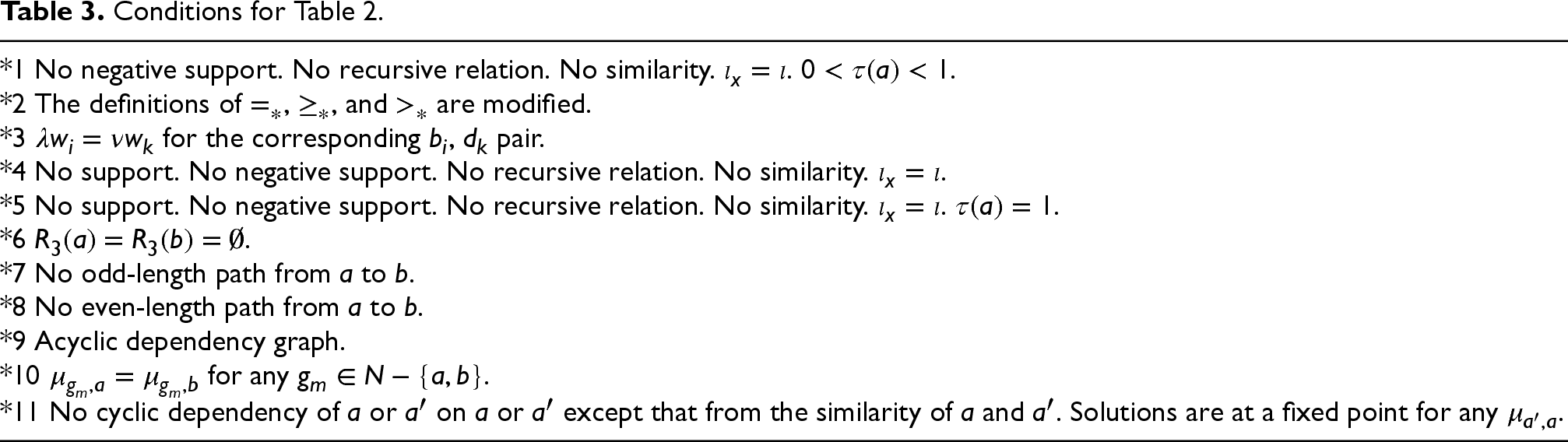 We collected student opinions on user information regulation as argumentation graphs.40,41 To encourage students to add propositions and claim relations, the outcome of the addition must be predictable. So, a proposition should come stronger if it gets an additional supporter, even if the value of the supporter is low. This predictability is partially guaranteed in Properties 26 and 27.