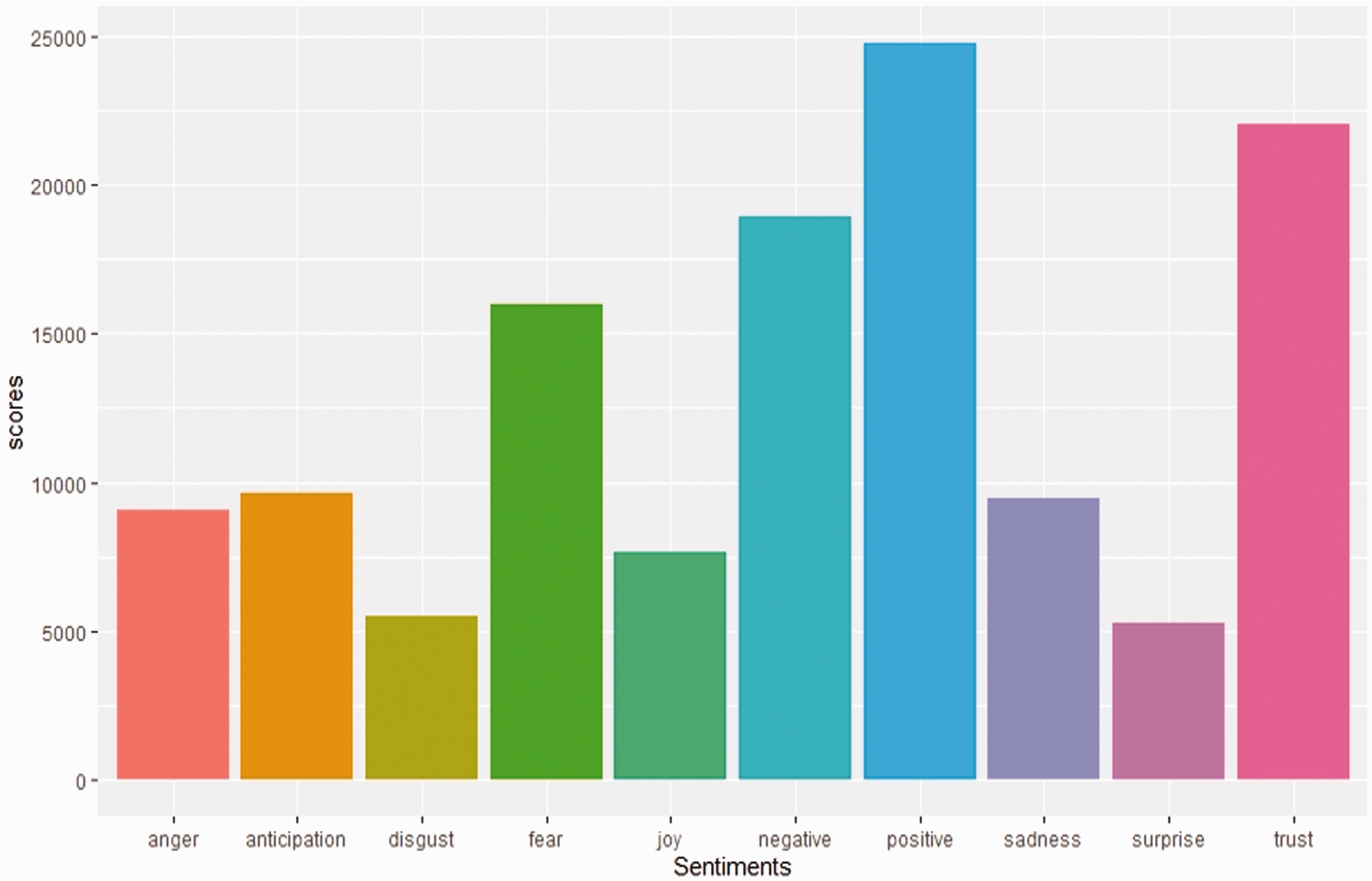 We employed the semantic network analyzer in R, which uses the sentiment dictionary by the National Research Council Canada to compute eight different emotions (anger, fear, anticipation, trust, surprise, sadness, joy, and disgust) and their corresponding semantic orientation (positive or negative) in a text (Mohammad and Turney, 2013). Thus, for each of the five groups of conversational structures, we computed the different emotions and semantic orientations expressed in the tweets of users (nodes) within the structure. To gain a deeper understanding of these semantic orientations and emotions of the tweets, we used the text analysis feature of NodeXL Pro (Sevin, 2014; Smith et al., 2009) to extract the most occurring word pairs associated with each of the five groups of conversational structures, which further illuminated or provided context to the sort of emotions and semantic orientations observed in the five groups.
