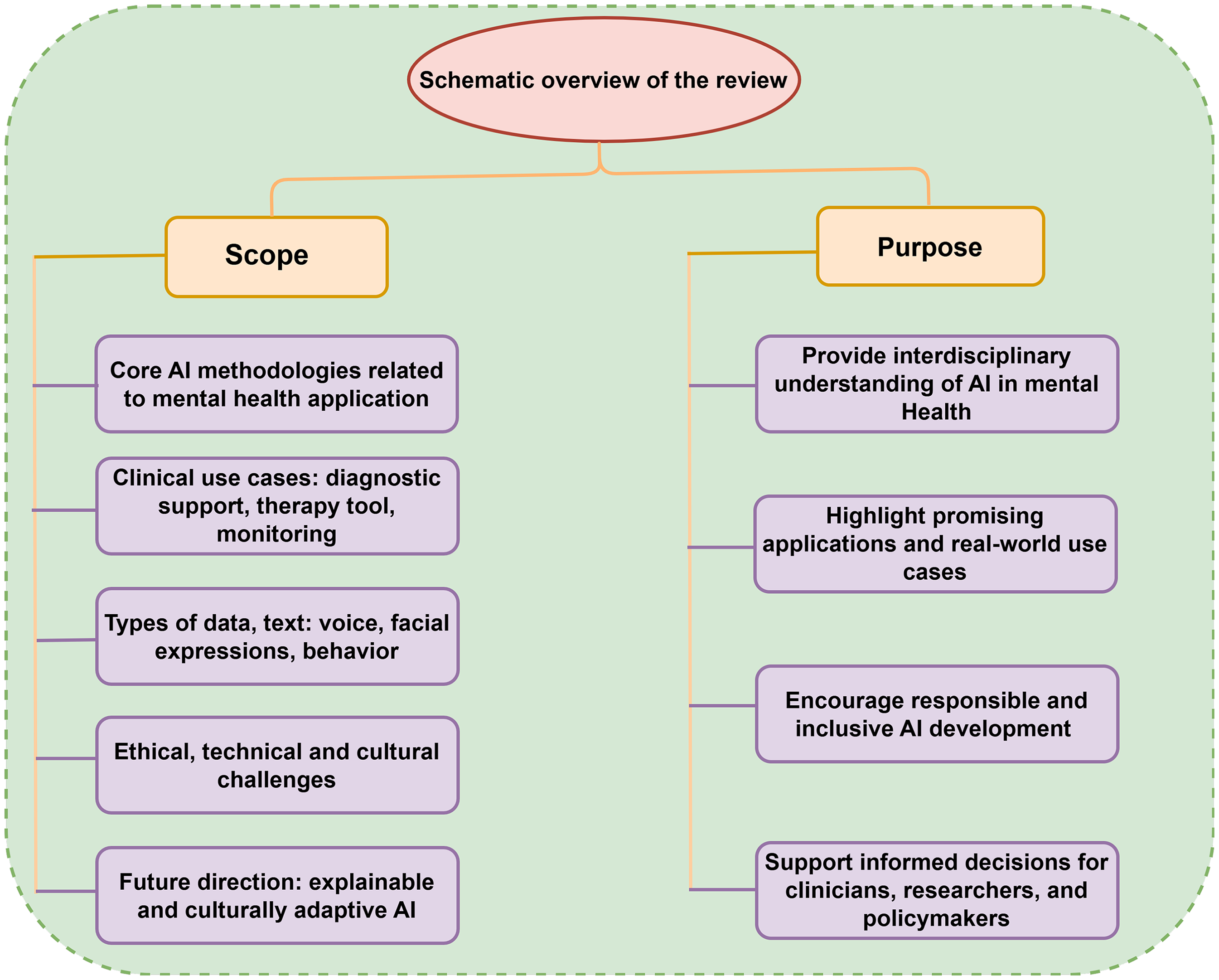An overview of the review’s scope and purpose in artificial intelligence (AI) for mental health.