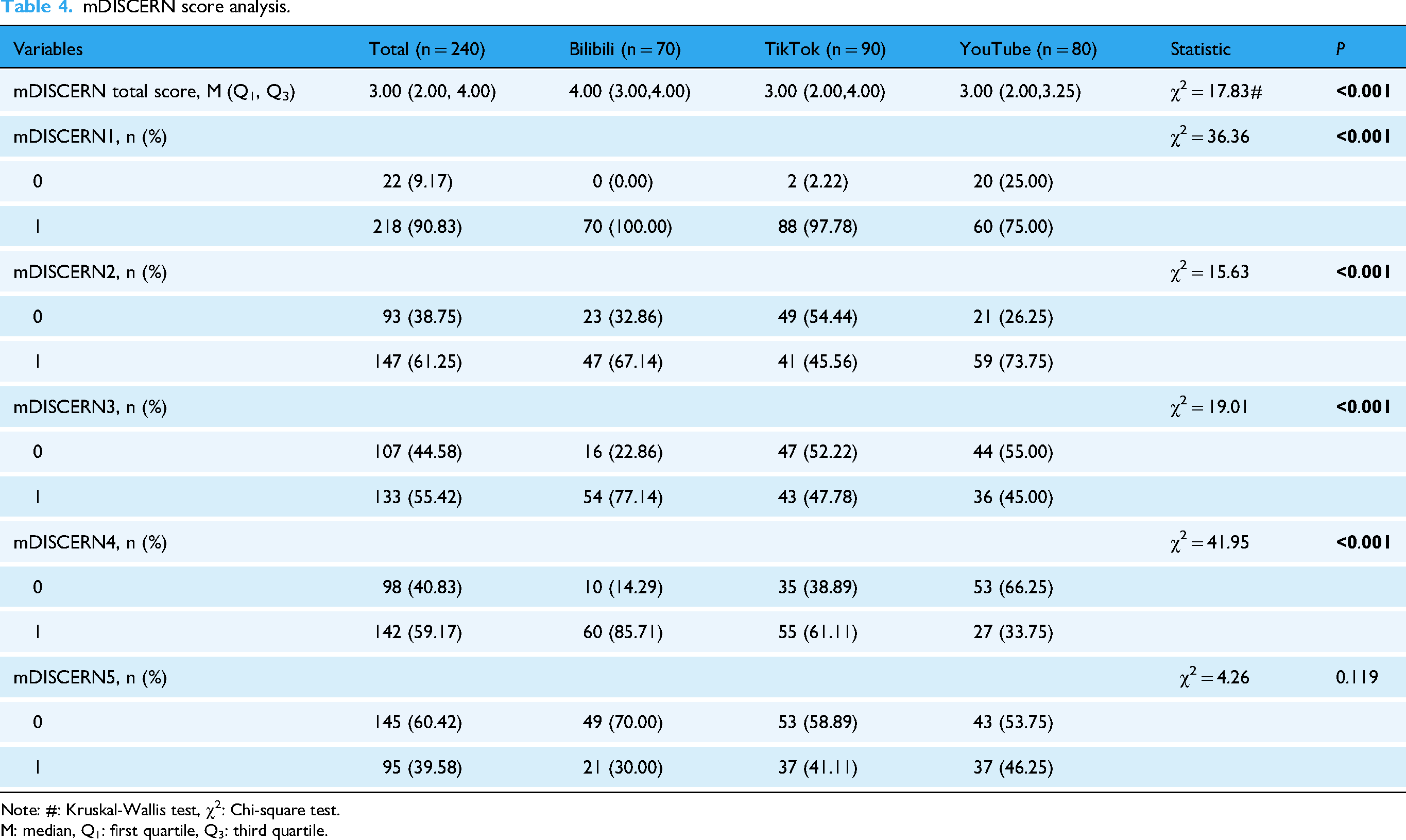 In light of this, the purpose of this study is to employ multidimensional assessment tools to methodically examine variations in the quality of content pertaining to “AI + 医疗(Medical)” across the three main short video platforms (TikTok, Bilibili, and YouTube).