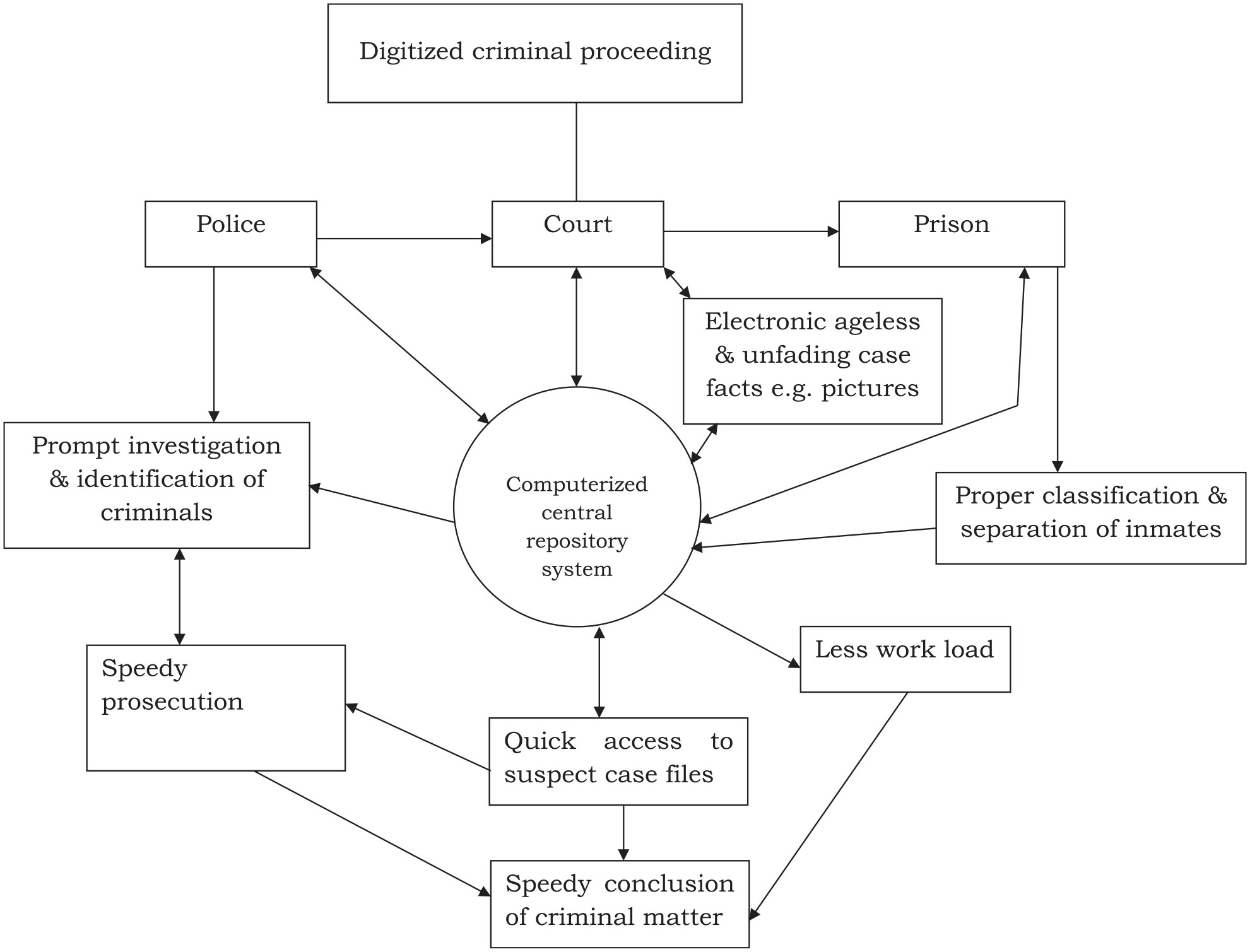 This computerized central repository system will be linked together through one directional communication channel; intelligence gathering will be collective and shared. This will ensure inter-agency communication in the CJS. The police communicate one directionally with the courts as well as the courts communicate with the police. This channel of communication saves time and ensures necessary information is preserved. The prison officials will easily classify and separate inmates in the category they belong. This means that condemned criminals, first time offenders, awaiting-trial inmates, debtors, and delinquents will not all be put in the same prison as was observed in Abakiliki and Afikpo prisons. The ideal computerized repository system will help CJS agents to have quick access to suspects’ case files which will lead to fast and prompt prosecution of criminal cases and in turn will help in the enhancement of quick conclusion of criminal trial cases in Nigeria.