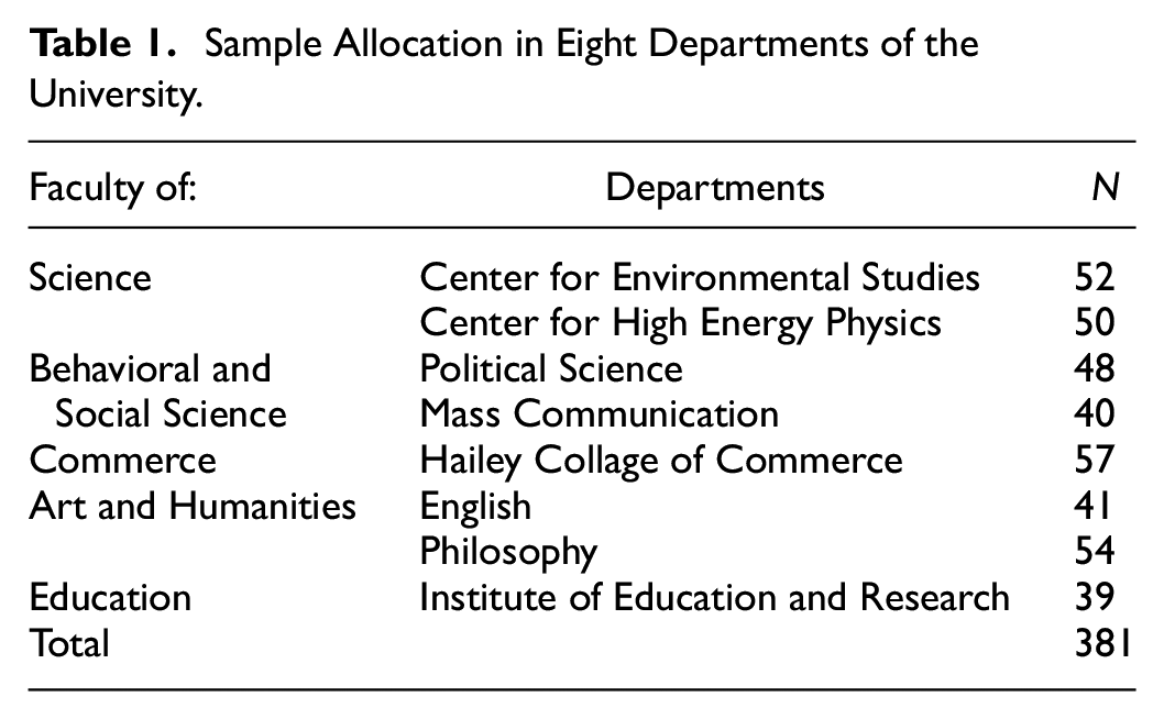 Additionally, all students provided their informed consent before completing the questionnaire. Participation in this survey was voluntary and no honorarium or ancillary benefits were provided to respondents. They could quit at any stage of data collection and their identities remained confidential. A consent form was designed along with a questionnaire, and cover letter and signed by all respondents. The researchers followed all ethical guidelines to take data from human subjects (Table 1).