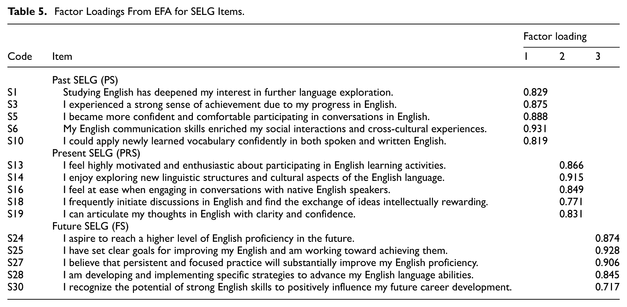 Factor Loadings From EFA for SELG Items.