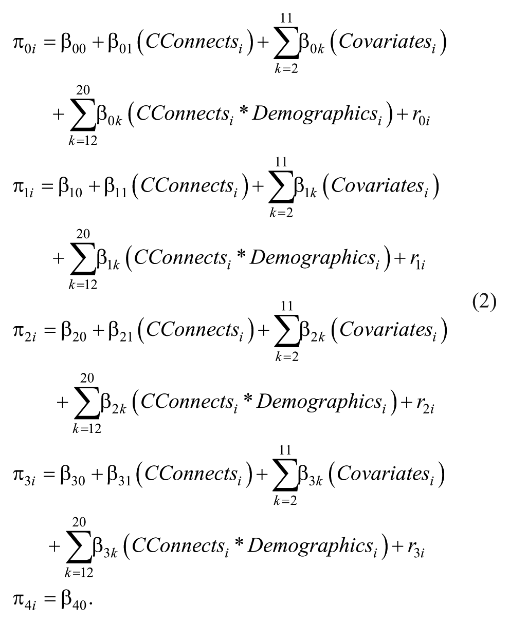 In addition to this base time specification at level 1, we also modeled the effect of transferring schools during high school to reduce possible selection bias due to differential high school mobility across groups. This is achieved by including a time-varying dummy variable,