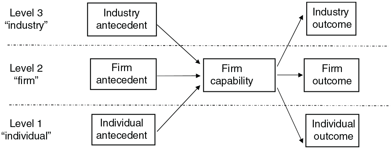 Multilevel antecedents and outcomes of a firm capability (three levels).