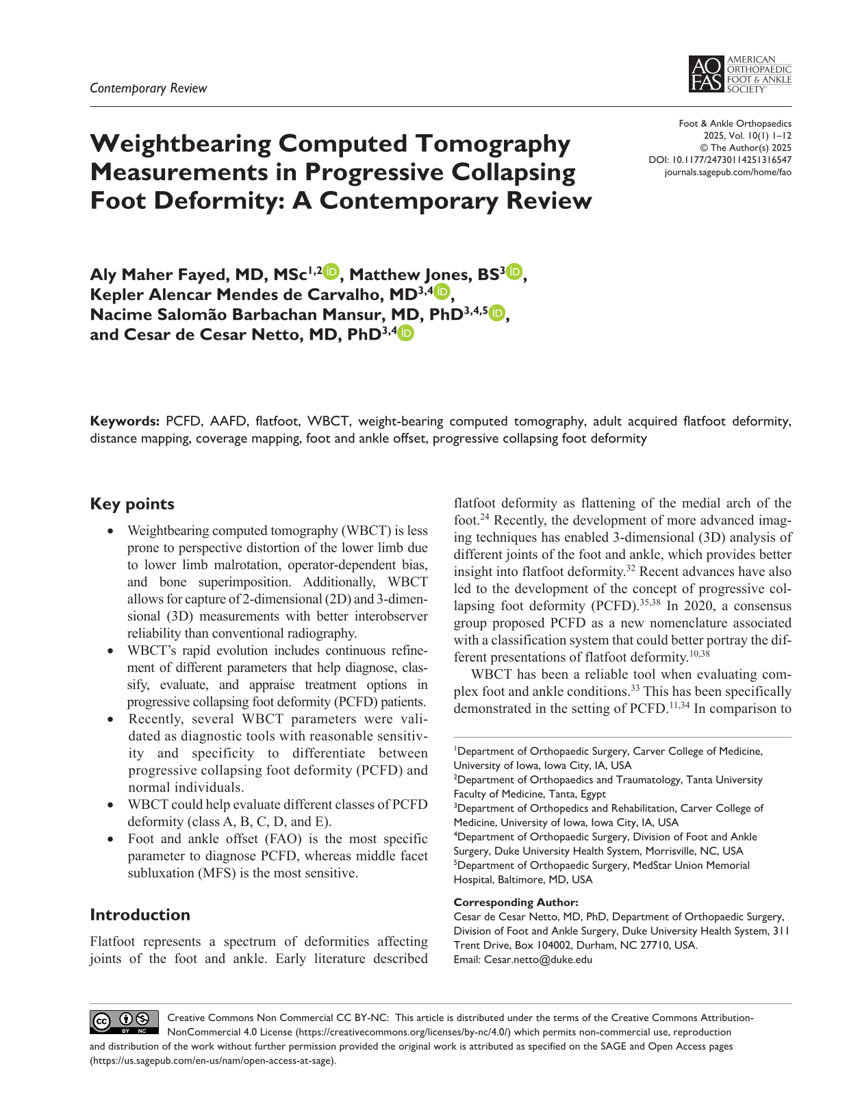 • Recently, several WBCT parameters were validated as diagnostic tools with reasonable sensitivity and specificity to differentiate between progressive collapsing foot deformity (PCFD) and normal individuals.