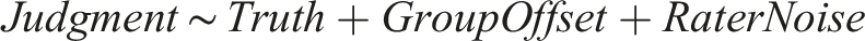 While none of the underlying components, Truth, GroupOffset, and RaterNoise, can be directly observed, this model provides a framework for interpreting many of the results of our study. Most importantly, the relatively high absolute correlations among judgments from random pairs of raters in all conditions suggest that the Truth component of judgments was fairly large; perhaps the notion of truth is not completely broken beyond repair.