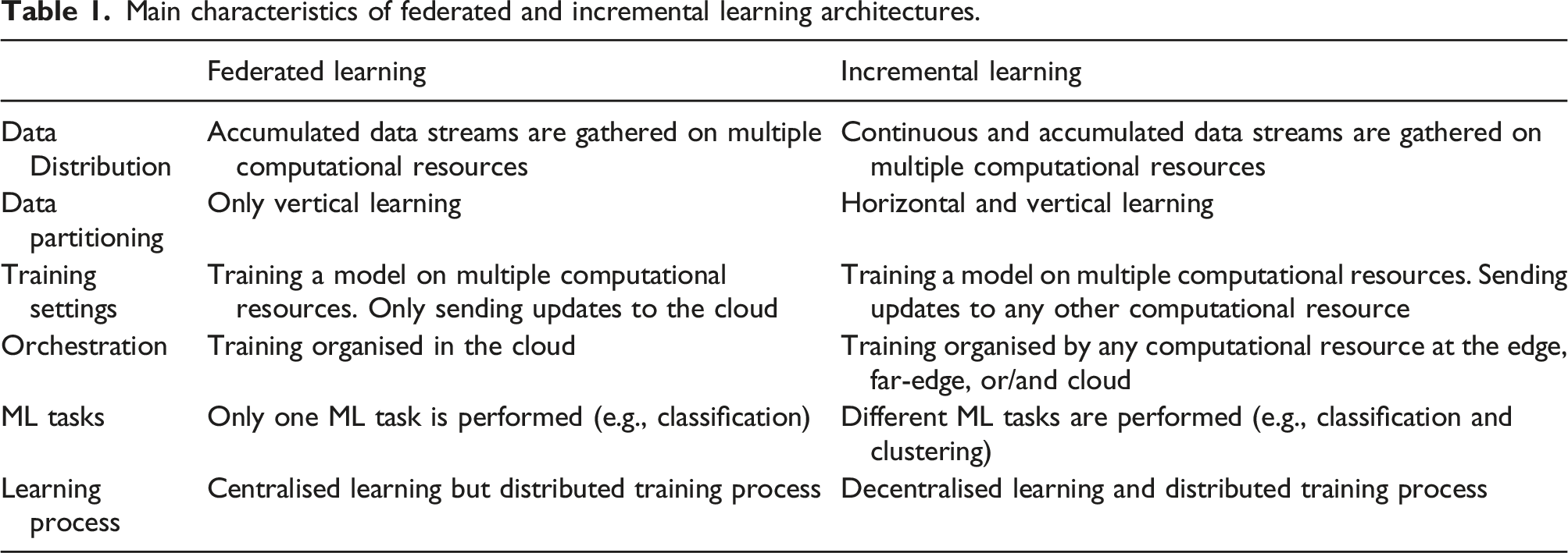 Towards these challenges, Guo et al. (2021) suggest hyper-convergence as the best-suited network architecture for analysing real-time data streams due to its unique virtualisation and higher fault tolerance characteristics. More research is needed to study reachability as a critical requirement to return well-timed and synchronised ML tasks. Additionally, the lack of standardisation, particularly at edge resources and IoT sensors, is currently hampering the achievement of always-on reachability required for implementing the proposed Intelligence Everywhere Learning paradigm.