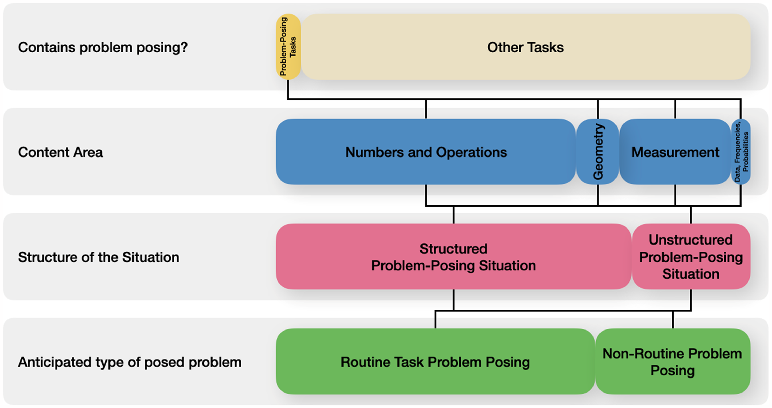 Visualization of problem-posing task categories and their relative frequencies.