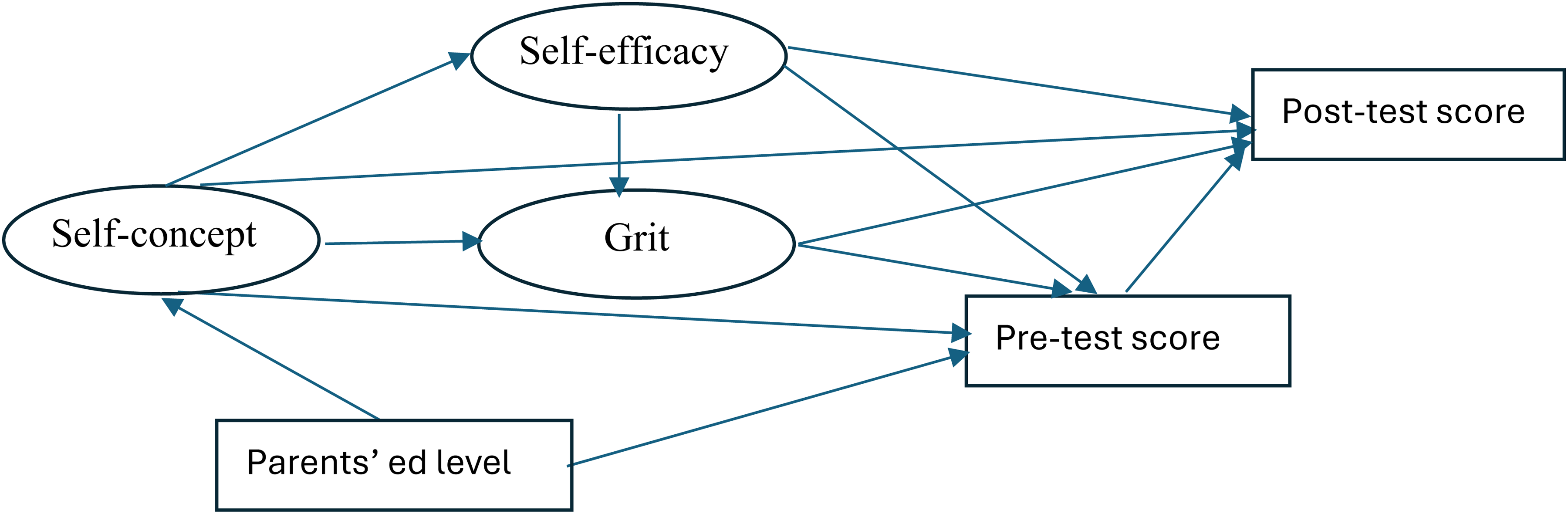 In summary, within Bandura's framework, grit can be understood as a product of self-efficacy and self-concept via the process of self-regulation. Students who believe they can succeed (high self-efficacy) set goals and monitor themselves (self-regulation); students with a strong self-concept and high self-efficacy are more likely to develop adaptive learning behaviors, leading to sustained effort and resilience in the face of academic challenges (Bandura, 1997). These factors contribute to a feedback loop, where successful experiences enhance self-beliefs, further reinforcing perseverance and academic success (Usher & Pajares, 2009).