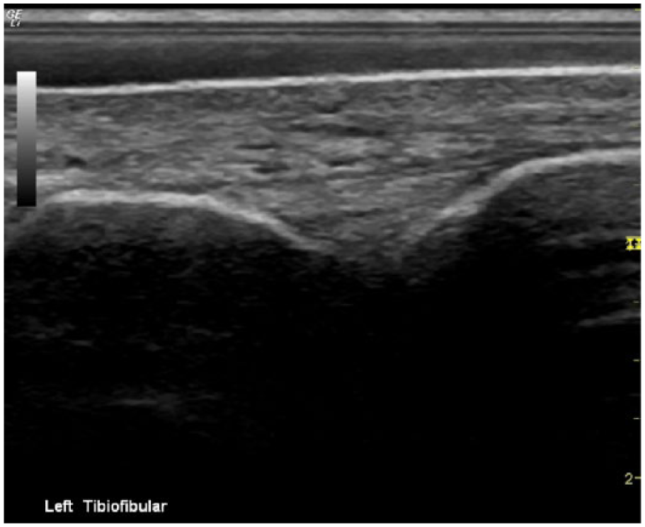 Long-axis sonogram showing a normal, asymptomatic left tibiofibular ligament.