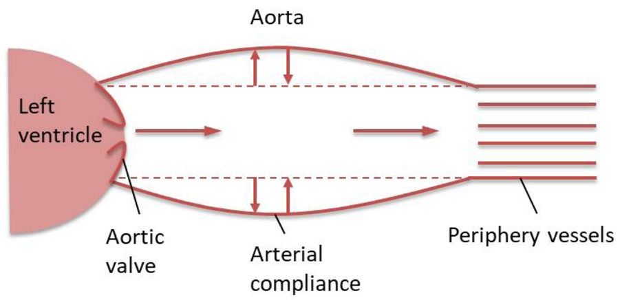 The Windkessel model takes into account the effects of arterial compliance and total peripheral resistance determined by the systolic and diastolic phases of the cardiac cycle. As shown in Table 1,