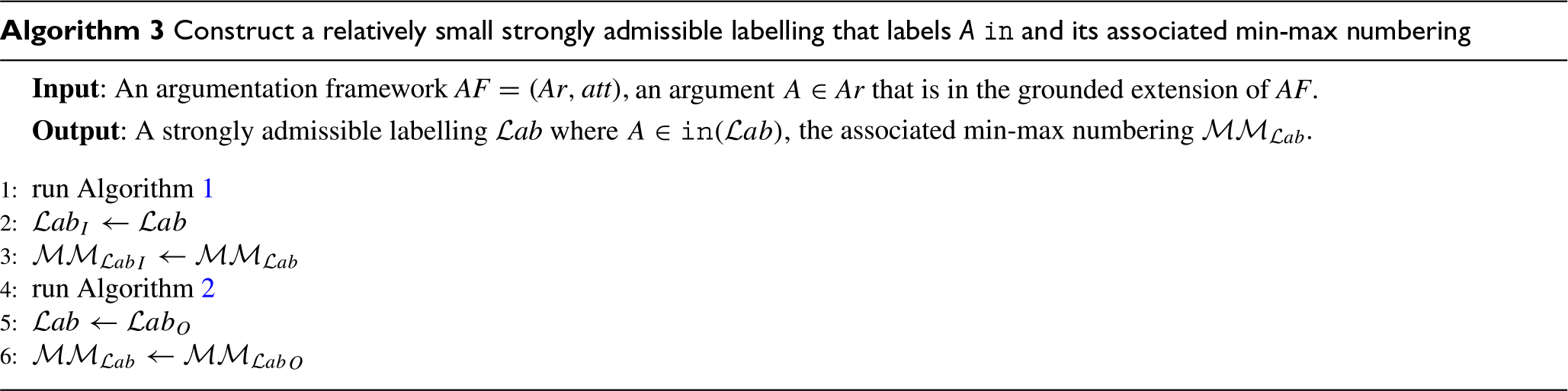 As for the basis of induction(n = 1), let us consider the first loop iteration. This is just after the for loop at lines 9–18 has finished. We need to prove that for each if Let if This is trivially the case as the end of the for loop at lines 9–18, no argument is labelled if We distinguish two cases: if We distinguish two cases: